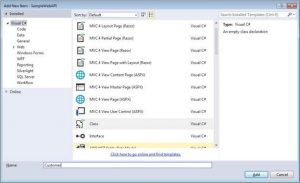 در پوشه ی Models ، یک Class ایجاد کنید و نام آن را Customer بگذارید.