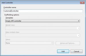 یک Controller اضافه کنید و نام آن را CustomerController بگذارید.