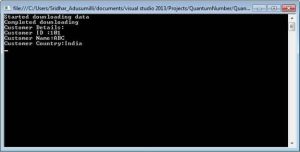 using Newtonsoft.Json; using System; using System.Collections.Generic; using System.Linq; using System.Text; using System.Threading.Tasks; namespace CustomerDetails { class Program { public class Customer { public int CustomerId { get; set; } public string CustomerName { get; set; } public string Country { get; set; } } static void Main(string[] args) { var url = "http://localhost:61453/api/Customer/GetCustomer"; var t = _download_serialized_json_data < Customer > (url); Console.WriteLine("Customer Details:"); Console.WriteLine("Customer ID :" + t.CustomerId.ToString()); Console.WriteLine("Customer Name:" + t.CustomerName); Console.WriteLine("Customer Country:" + t.Country); Console.ReadLine(); } private static T _download_serialized_json_data < T > (string url) where T: new() { using(var w = new System.Net.WebClient()) { var json_data = string.Empty; // attempt to download JSON data as a string try { Console.WriteLine("Started downloading data"); json_data = w.DownloadString(url); Console.WriteLine("Completed downloading"); } catch (Exception) {} // if string with JSON data is not empty, deserialize it to class and return its instance return !string.IsNullOrEmpty(json_data) ? JsonConvert.DeserializeObject < T > (json_data) : new T(); } } } }