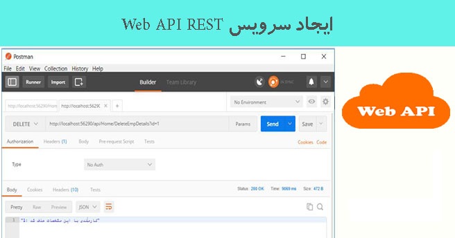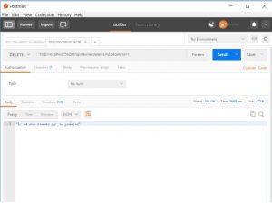 در تصویر بالا سرویس Web API REST ، متد HTTP Delete پاسخ Status برابر 200 OK است که به این معناست که سرویس REST با موفقیت اجرا شده است.