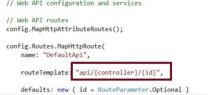 دلیل خطای فوق این است که ما از ساختار url که در مسیریابی برنامه web API قرار دارد پیروی نمی کنیم.در ادامه ساختار تعریف شده برای web API را که در فایل WebApiConfig.cs قرار دارد مشاهده میکنید: