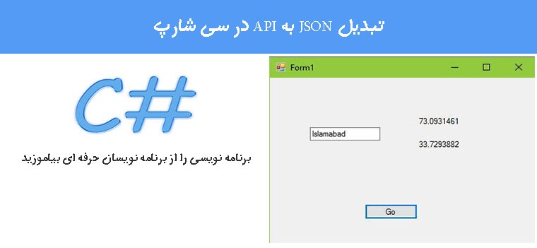 در این مقاله به نحوه چگونگی تبدیل JSON در سی شارپ می پردازیم.JSON مخفف JavaScript Object Notation است اگر شما اطلاعات کافی از این مفهوم ندارید در گوگل جستجو و مطالعه کنید. سراغ نحوه استفاده از API ها میرویم و میبینیم که چگونه با استفاده از این برنامه های کاربردی میتوان داده های مورد نیاز خود را استخراج کنیم.سیستمی را پیاده سازی میکنیم که ,نام یک شهر را گرفته و مختصات آن را برمی گرداند به عنوان مثال طول و عرض جغرافیایی.