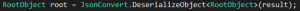 متد Deserialize را از JsonConvert فراخوانی می کند.