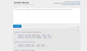 الان به استفاده از API ها در برنامه میرویم. برای تبدیل JSON ما باید یک خروجی داشته باشیم که در مرورگر طبقه بندی برنامه نویسی آن را نشان میدهد.به جای اینکه به صورت دستی کار سخت ایجاد کلاس ها و موارد دیگر را انجام بدهیم ما باید یک ابزار ایجاد کنیم که کار این تابع را به صورت خودکاربه جای ما انجام دهد.به آدرس Json2Csharp رفته ودر قسمت مستطیل ما می توانیم به صورت دستی سورس کد ی که در قسمت بالا داریم راpast کرده ویا آدرس URL ای را واردکرده که در بالا داریم و با کلیک بر روی دکمه generated آن JSON را برای ما تبدیل به API میکند .