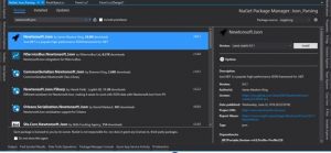 الان شما با رفتن به این مسیر Solution Explorer -> project-> references-> manage NuGet packages صفحه ی NuGet Manager را باز میکنید در نوار جستجو نوع newtonSoft.json را جستجو می کنید که در کار تبدیل JSON به ما کمک می کند.