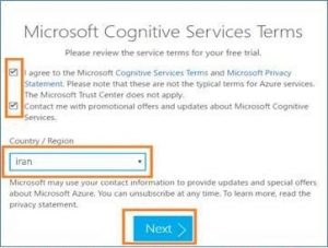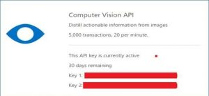 برای استفاده از API مخصوص بینایی(Vision API)، ابتدا باید یک API keys از Microsoft Cognitive Services دریافت نمایید که این سرویس ها در Azure Cloud قرار داده شده اند. در حال حاضر یک طرح رایگان وجود دارد که دارای محدودیت 5000 تراکنش در ماه است.