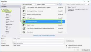 از منویStart گزینه New Project را انتخاب کنید و سپس از بین Template های مربوط به Visual C#، گزینه Console Application را انتخاب کنید و سپس Blank Application را انتخاب کنید و یک نام مناسب برای برنامه انتخاب کنید(ComputerVisionAPI) و در آخر کلید OK را بزنید.