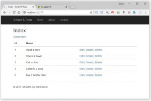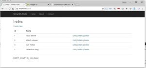 مقداری را که متد PUT بازگشت داده است را در قسمت Body می بینید. مقدار id که بازگردانده شده است دقیقا Id همان رکوردی است که قصد ویرایش عنوان آن را داشتیم. حال اگر صفحه Index را که لیست ToDo ها در آن نمایش داده می شوند را Refresh کنیم نتیجه را چنین خواهیم دید: