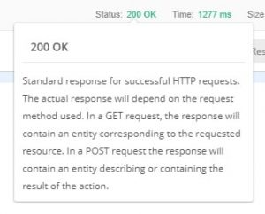 اگر نتیجه موفقیت آمیز باشد و خطایی از جانب WebAPI ایجاد نشده باشد، وضعیت نمایش داده شده مقدار 200 را خواهد داشت که در شکل بالا هم می بینیم.