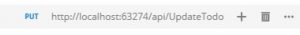 3- حال باید ورودی مورد نیاز تابع UpdateTodo را که در کلاس TodoApiController.cs قرار دارد را در اختیار این URL قرار دهیم. این ورودی نیز باید به صورت Json باشد.