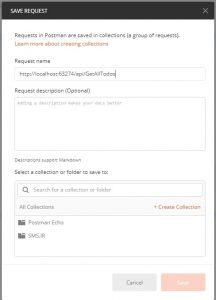 3- حال باید ورودی مورد نیاز تابع AddToDo را که در کلاس TodoApiController.cs قرار دارد را در اختیار این URL قرار دهیم. این ورودی باید به صورت Json باشد.