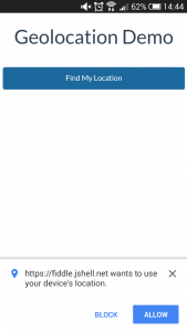 از آن جایی که Geolocation API اطلاعات بسیار مهمی را به نمایش می گذارد زمانی که یک اپلیکیشن تلاش می کند که برای اولین بار به آن دسترسی پیدا کند یک دیالوگ ظاهر می شود که درخواست اجازه از کاربر می کند. به این ترتیب کاربران در هنگام استفاده از Geolocation API مطمئن می شوند که اطلاعات شخصی آن ها بدون اجازه خودشان پخش نمی شود.