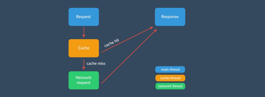در thread اصلی volley همانند AsyncTask ، شما فقط اجازه ی ایجاد و ارسال درخواست ها و همچنین دریافت پاسخ ها را دارید نه چیز بیشتر ! نتیجه ی اصلی این هست که شما هر کاری را که در متد doInBackground درون کلاس AsyncTask انجام میداد را بتوانید به راحتی فراموش کنید چون کتابخانه ی volley بطور خودکار درخواست های HTTP را مدیریت میکند و خطاهای شبکه را که برای شما اهمیت دارند را شناسایی میکند.