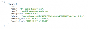 همونطور که میدونید اسم صفت telephone رو موقع برگشت به phone تغییر دادم. صفت های photo به avatar تغییر دادم همچنین آدرس سایت بهش اضافه کردم. بله، صفت updated_at رو پاک کردم چون نیازی نبود که اون رو هم برگشت بدم. و در آخر هم created_at به registeredAt تغییر دادم.