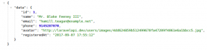 public function toArray($request) { return [ 'id' => $this->id, 'name' => $this->name, 'email' => $this->email, 'phone' => $this->telephone, 'avatar' => url($this->photo), 'registeredAt' => $this->created_at->toDateTimeString() ]; }